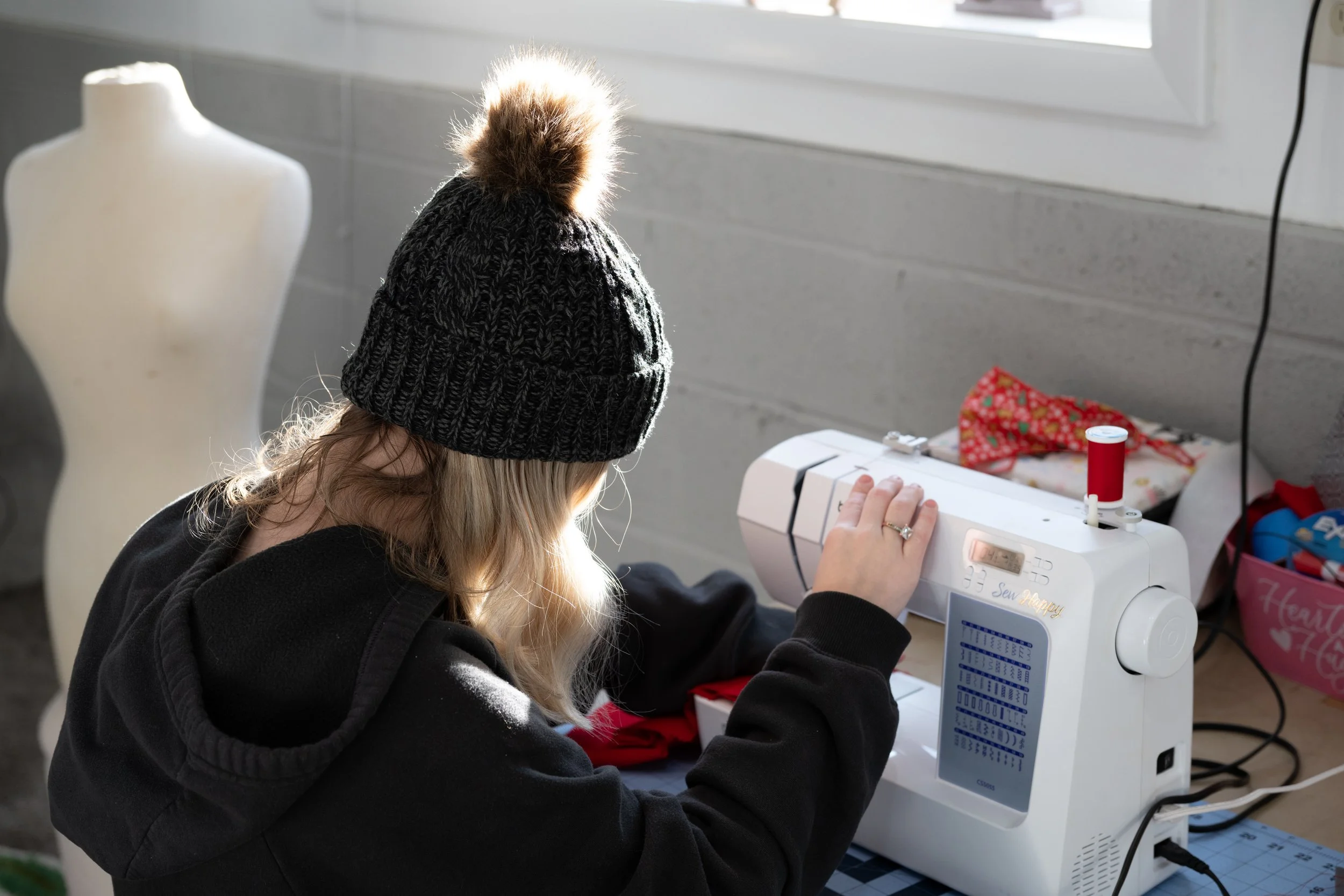 Our products are made by hand all by me, Jennifer. In addition to making these products by hand, they are also made to order, decreasing the amount of fabric waste and excess product. We also try to find the best fabrics, using materials with less microplastics.