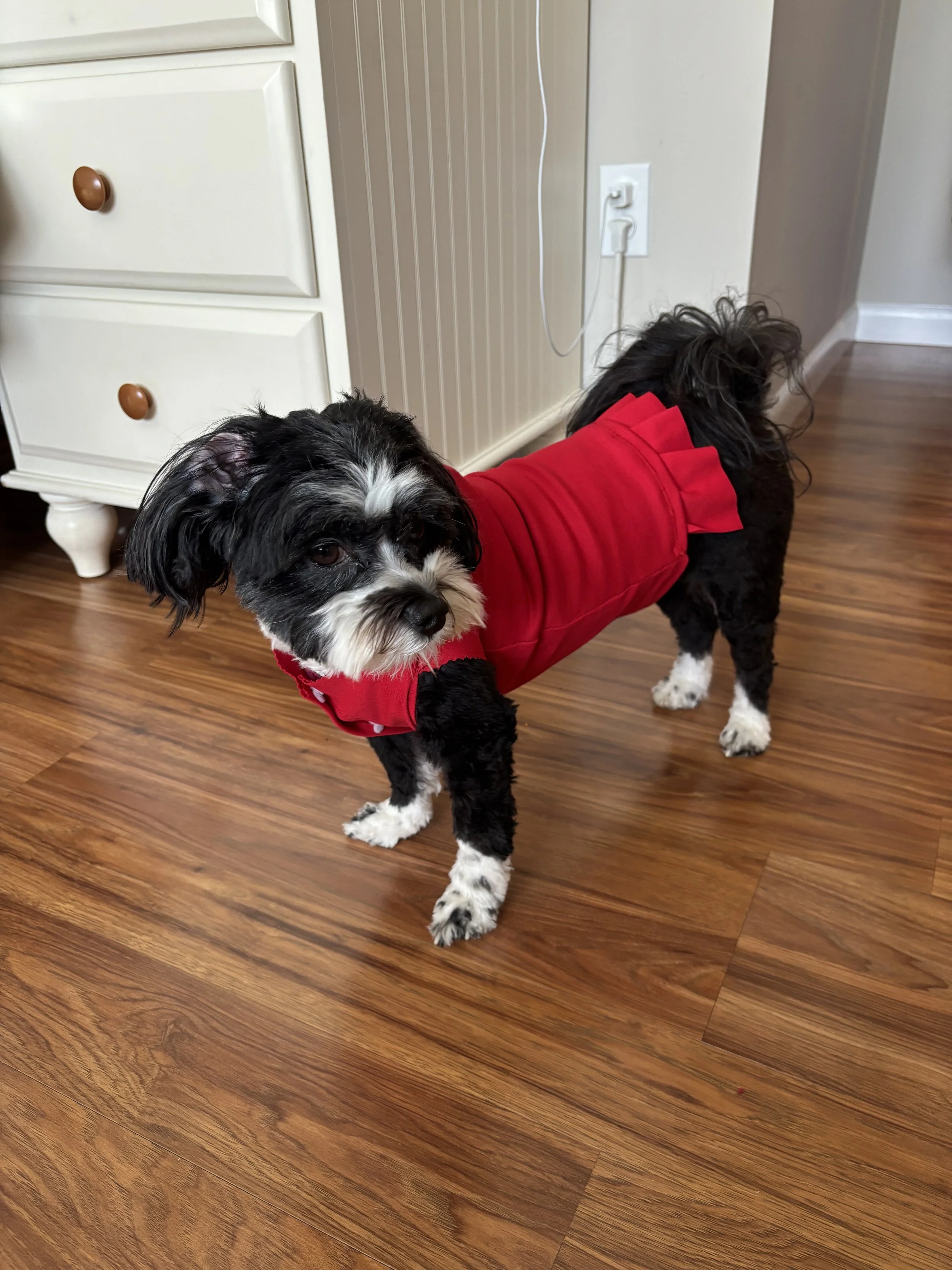 In my free time, I use fabric scraps from previous projects to design clothes for my “fur baby” Zoe. Not only does this reduce fabric waste, but it makes her the most fashionable girl at doggy daycare.